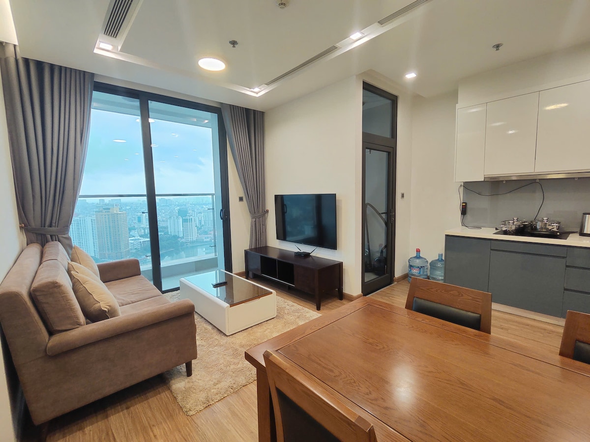 Dear valued guests! The building now demands facial ID to enter, therefore the process took some time. Face ID takes a few days or a week to complete, therefore we only accept guests book for at least ONE MONTH at this apartment. Thank you for understanding. Our apartment Facing the main street, this chic apartment is located on the fifteenth floor of the Vinhomes Metropolis M2 building. Monthly guests receive free access to the gym, the pool, weekly housekeeping.. etc..