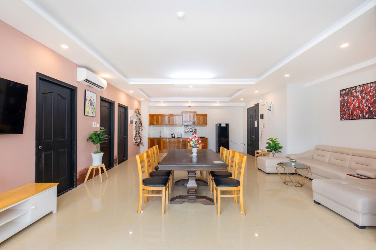Our apartment has 1 living room, dining space, 1 bedroom (1 double bed and sofa bed), 1 bathroom and the balcony. - The bedroom: Our view from the bedroom is romantic with the view of the grand hill shimmering. We provide air-conditioner, the bed topper, and the bolster. - Kitchen: necessary facilities is provided to cook a delicious meal. - Balcony: spacious balcony with a set of 2 cane-chairs vs 1 table, where guests relax and enjoy the stunning views of the blue sea with a delicious meal.