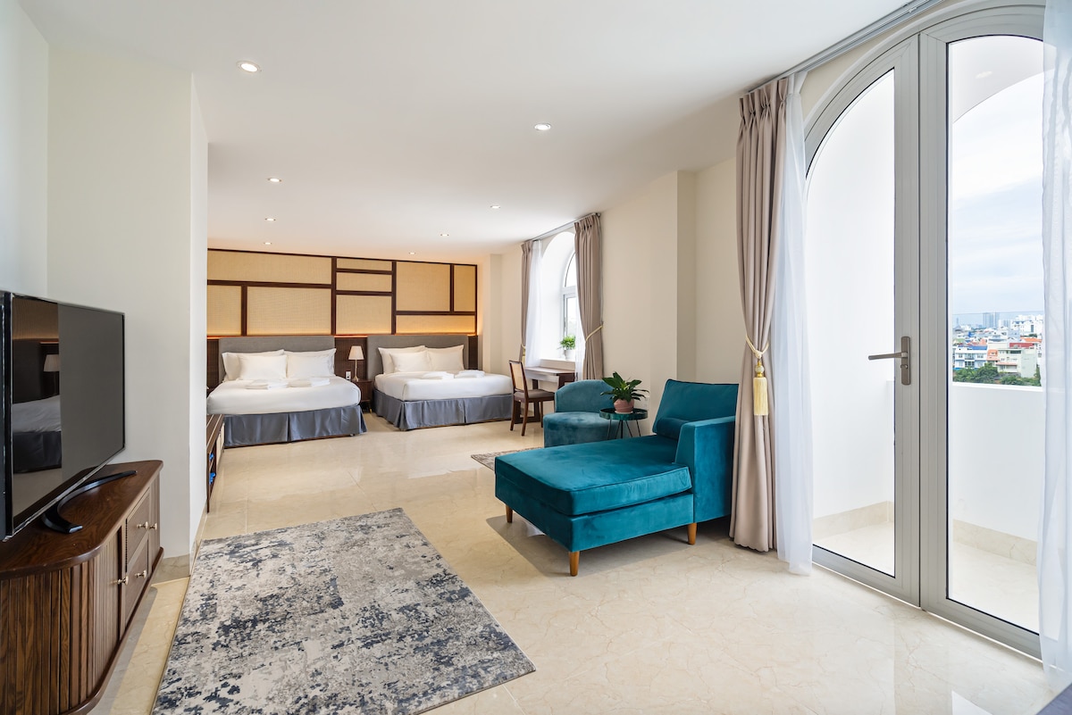 Our hotel is a brand new boutique hotel placed nearby beautiful beaches of Vung Tau City. The Deluxe room especially has two queen-sized beds and a beautiful view of the neighborhood with a balcony. Our hotel is friendly to elders, infants, under 12 babies, pregnant women, and LGBTIQ+ people. The room is new and clean. If you need to stay with your dogs due to health reasons, please let us know so that we can arrange your stay in our best. We can speak Vietnamese, English, Russian.