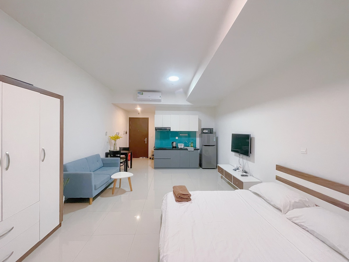 Brand New project which is located nearby with District 1 High-end and 100% newly studio with fully amenities including: infinity pool,sauna.,laundry, bathroom, free wifi, kitchen, dining table, co-working space, party room,... ★Estimated time by taxi - 10 minutes to Notre Dame Cathedral - 5 minutes to Ben Thanh Market - 5 minutes to Bitexco building - 15 minutes to The Landmark 81 building