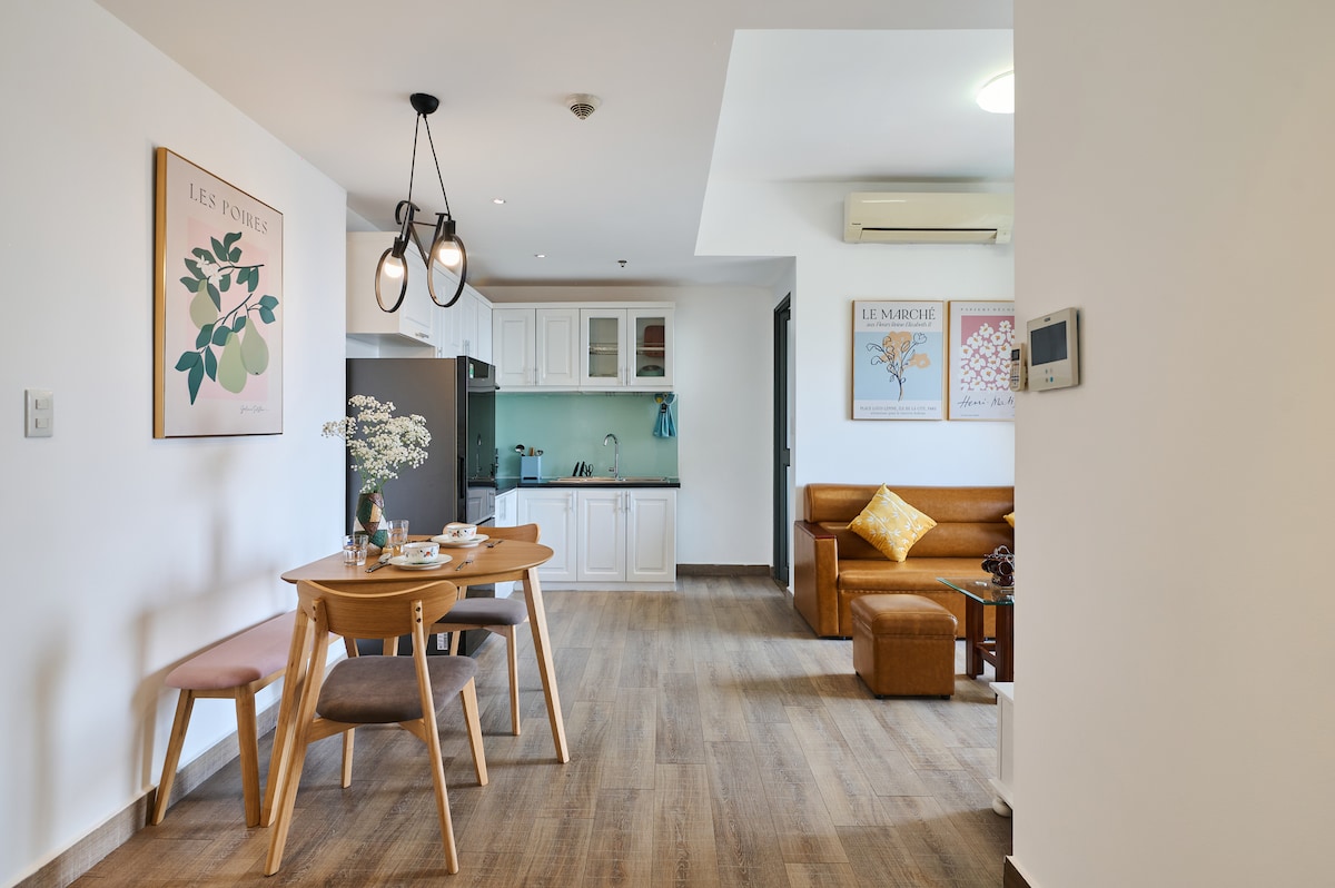 Stay in the heart of Saigon! This bright 30 sqm apartment sits in a charming local block, surrounded by cafés, 24/7 convenience stores, and great street food all within 100m. You’ll be just a short walk from the best spots in Dis 1. The space features Scandinavian pop design, custom furniture and creative details. Everything is thoughtfully curated for comfort, full amenities, a workspace, kitchen, and entertainment. Unwind completely inside and experience Saigon like a true local with us