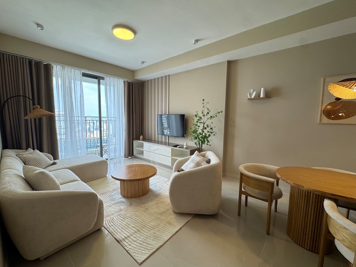 The apartment is beautifully designed in Wabi Sabi style located in D1Mension Residences building, District 1 apartment center, artistic style, high-class resort amenities, special rooftop swimming pool _ spa pool _ sauna room, gym_ showroom, private office, garden fish pond, 4' pizza right in the lobby, garden BBQ area, children's play area, spacious waiting room, All bedroom windows and balconies are airy, unique, luxurious, classy apartment