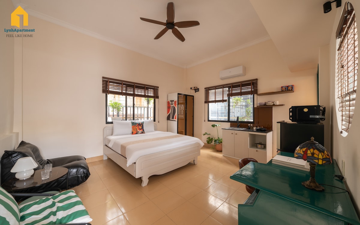 A beautifully designed studio apartment with everything you need, centrally located but hidden away just enough for a peaceful night of sleep away from the heavy city noise. Great for travelers who want to explore Saigon and looking for quality comfort and a more local experience. - Beautiful swimming pool - Free fast wifi, Cable TV - Free amenities for your living: washer, dryer, AC, fridge, hot water - Kitchen with enough tools for your cooking. Note: Not provide/support VAT invoices