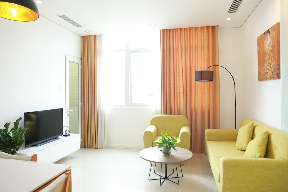 A modern, well-equipped studio apartment just minutes walking from Back Beach (Bai Sau). Walking distance to Lotte Mart, pharmacy, local market and convenience store. The Apartment is a perfect fit for a family of 4 with one bedroom with extra bed, kitchen, huge living room, comfortable shower, refrigerator, dinning table, working desk, closet and huge Wifi TV with Youtube.