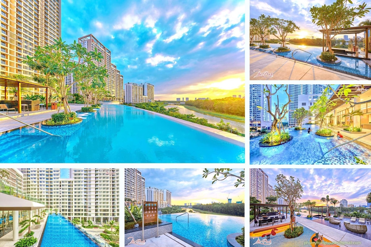 This 3bedroom apartment is located at ZENITY district 1 HCMC_130sqm: * ELITE furniture, COMFORTABLE bedding, HIGH-END facilities * Sai Gon River/City Skyline view * FREE Infinity Pool * FREE LUXURY Working Place * FREE Kid playground * FREE GYM * FREE Airport Pick_up for reservation from 7 nights * FREE Salt Paragon Pool/ Working place/Luxury Hall/Dinning Place/Sauna/Jacuzzi * FREE CLEANING Every 3 days * FREE extra Folding Mattress