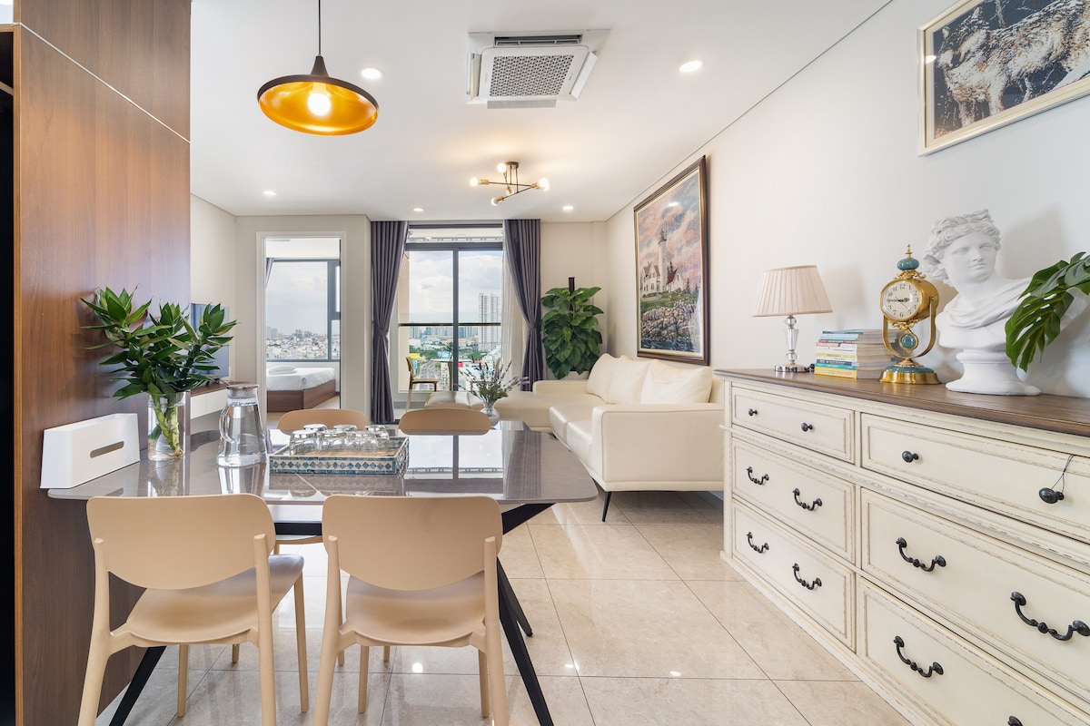 Welcome to Your Urban Oasis! Relax in our 1-bedroom apt for 2 with a wide-view balcony in Japan Town, just 5 minutes from HCM center. Restaurants, bars, cafes, massage spots, and convenience stores are all within a 1-200m walk. On 3rd floor, your Japandi paradise has full amenities. No elevator, but the wide and gentle stairs are a free workout! 💪 Enjoy a 100-inch projector for movie nights, a cozy 1.8m sofa, a fully-equipped kitchen, and a refreshing bathroom.