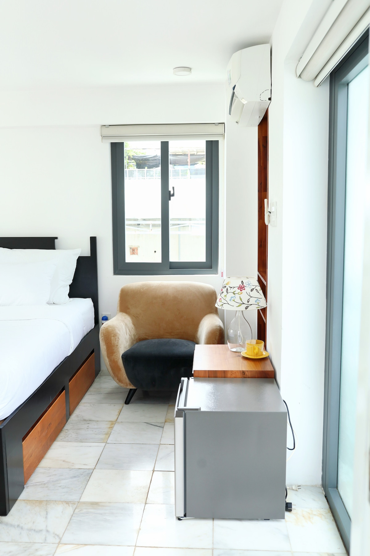 Căn phòng nên thơ, yên tĩnh ở tầng 3 ngay giữa Trung tâm Quận 1, Tp. HCM, được bài trí nghệ thuật do chủ nhân làm trong ngành thời trang chăm chút. Phòng rộng 30m2 với ban công rộng nhìn xuống khu vườn nhỏ xanh mát ở tầng trệt ngay trước Boutique nhỏ xinh của chủ nhân. Vị trí phòng riêng ở tầng 3 thuộc căn nhà 4 tầng (xây 2019) trong hẻm an ninh rộng 3.5m cạnh Sở cảnh sát và cách đại lộ Trần Hưng Đạo 20m. Địa điểm cách phố đi bộ Bùi Viện 700m, cách chợ Bến Thành 1.8km và sân bay là 7.8km.
