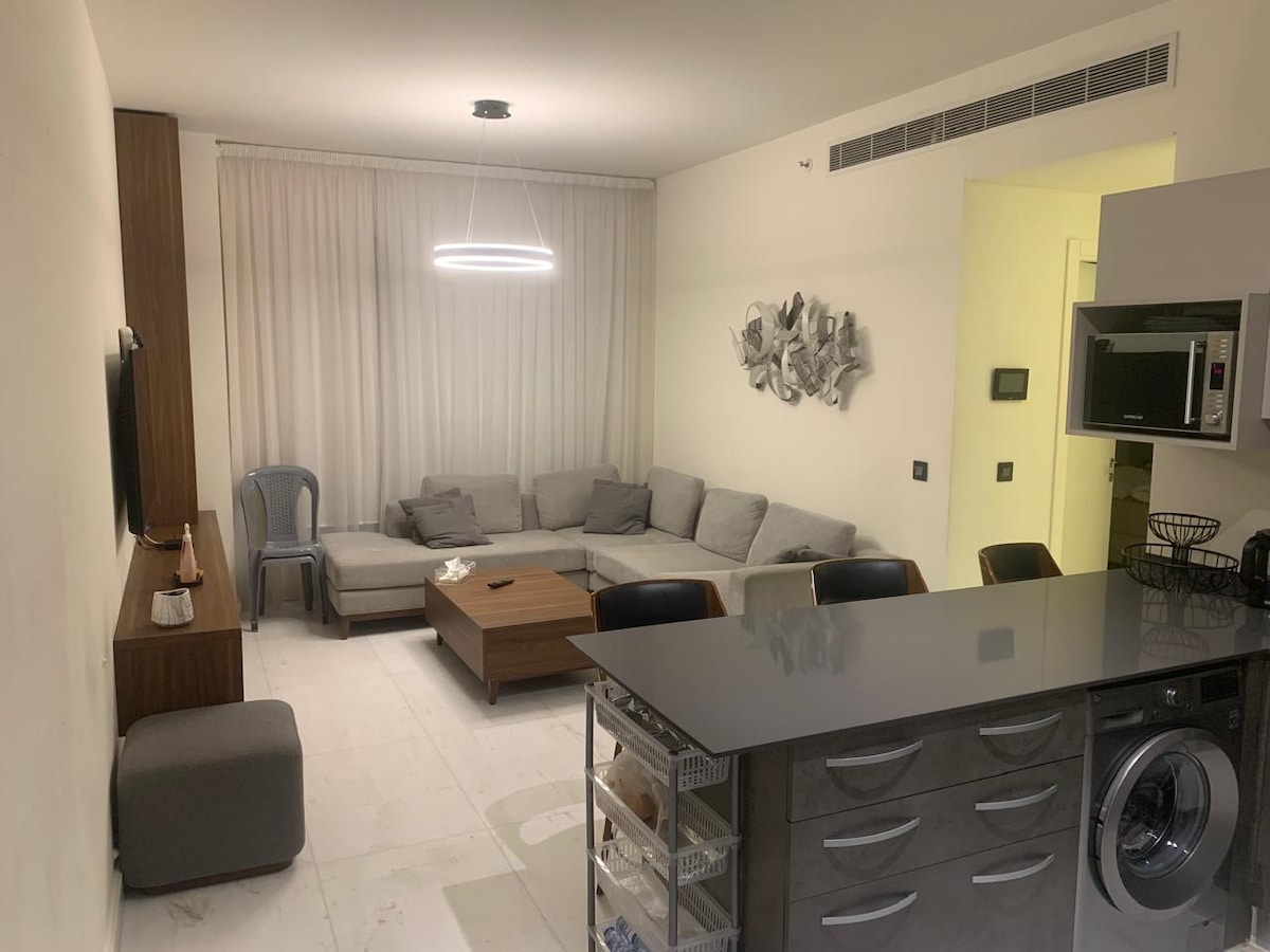 Enjoy a luxurious and stylish experience at this modern 3 bedroom apartment , our (long stayer) guests are entitled to enjoy a range of high end amenities, including a swimming pool, fitness center, spa ,kids playground and kids pool. The apartment provides 24/7 security and concierge services insuring a safe and comfortable living experience for all residents. Located on the 20th floor, the apartment overlooks beautiful city view from all rooms