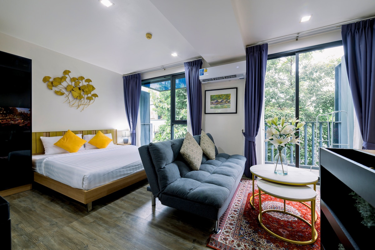 ✨ Only 800m to Patong beach - where lively restaurants, shows, shopping mall, bars and thrilling nightlife await ✨ Enjoy a pool-view balcony in this freshly furnished two-bedroom apartment—the only one with a sofa bed, easily sleeping up to five ✨ Price Includes ALL utilities: ✔ NO hidden costs – Electricity, Water, WiFi, 100% covered ✔ Free airport pick-up one time: For minimum 3 nights booking ✔ Free access to two Swimming Pools (groundfloor & rooftop infinity pool), a Fitness Gym, and Parking