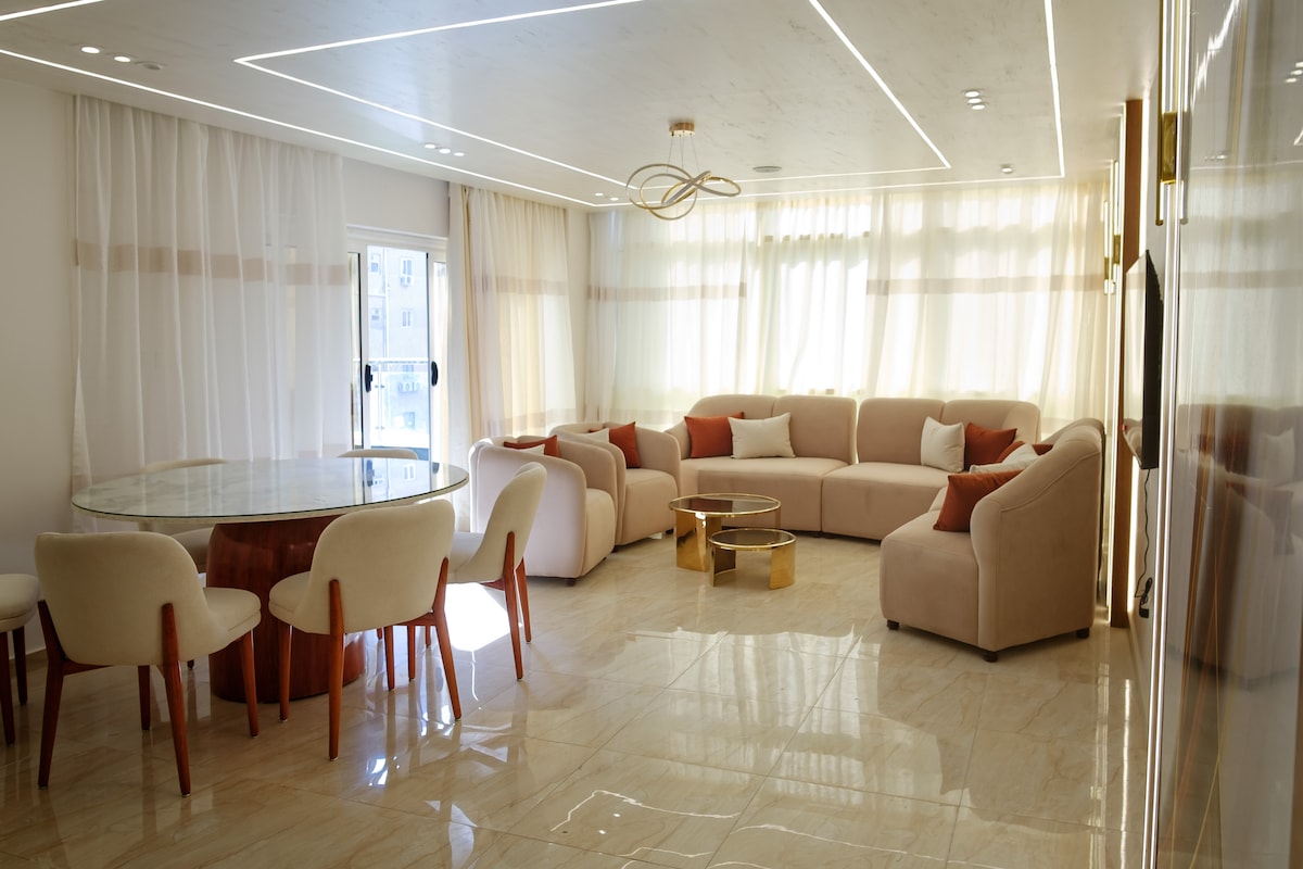 Elegant Downtown apartment with stunning square views, 2 suites + 2 bedrooms, hosting up to 8 guests. 3rd floor (no lift) with luggage assistance; earplugs provided to ensure a peaceful stay despite the vibrant city outside. Steps from cafés, bars, the Egyptian Museum, and Sadat Metro Station. Passports scanned copies should be provided upon booking. Note: Egyptian & Arab couples must provide a marriage certificate. Only approved visitors allowed. Parties not allowed.
