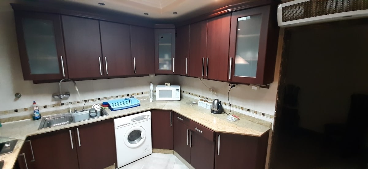 Relax with your family at this peaceful place. 3 BDR (1 master), good for 6 adults 2 BR with hot water 5 min (3.7 km) to CAl Airport 5 min (650 m) walking to City Centre Almaza Compound Security Free WiFi Free Parking Fully equipped kitchen (cooker, oven, microwave, dishwasher, washing machine, dryer & full cooking & dining sets) 50”TV Egyptian Cotton Towels and bed linen Additional housekeeping upon request with fee Car/driver upon request with fee The accommodation is non-smoking property