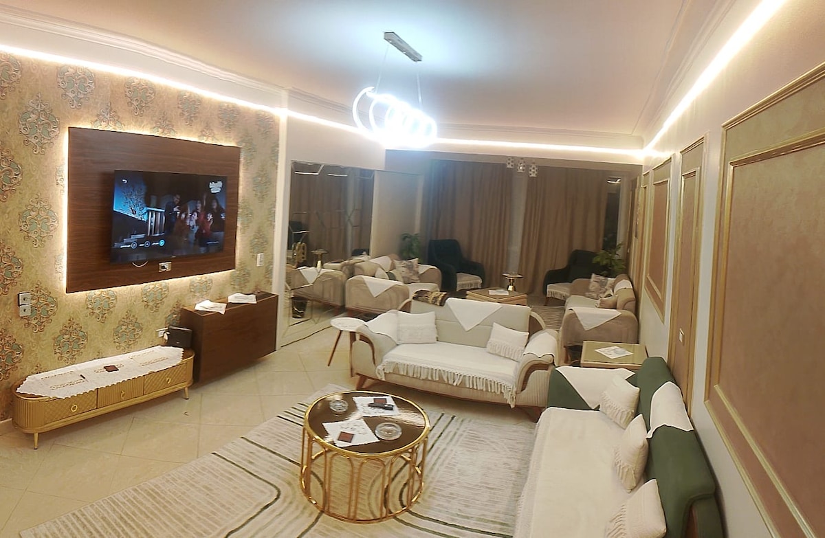 House of Nefertiti – A Royal Stay in Cairo Live like royalty in this elegant, Egyptian-themed apartment—just minutes from City Centre Almaza, Cairo Airport, and Downtown. Enjoy a private in-unit jacuzzi, fully equipped kitchen, cozy living space, and a peaceful, family-friendly setting. Perfect for couples, solo travelers, or families looking for comfort and a touch of history. Your pharaonic escape awaits!