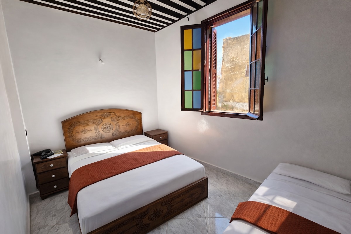 Welcome to Dar El-Kendil, a charming 1920s riad nestled in the heart of Fès’ historic medina! 🎨✨ You’ll have the entire house to yourself. Enjoy traditional Moroccan charm combined with modern comforts: cozy furniture, cheerful décor, air conditioning/heating, fast Wi-Fi, and a fully equipped kitchen. Just a 10-minute walk will take you to Fès’ most iconic sites: Bab Boujloud (the Blue Gate), Al-Qarawiyyin Mosque, Funduq al-Najjarin, & the historic market, perfect for fresh local ingredients.