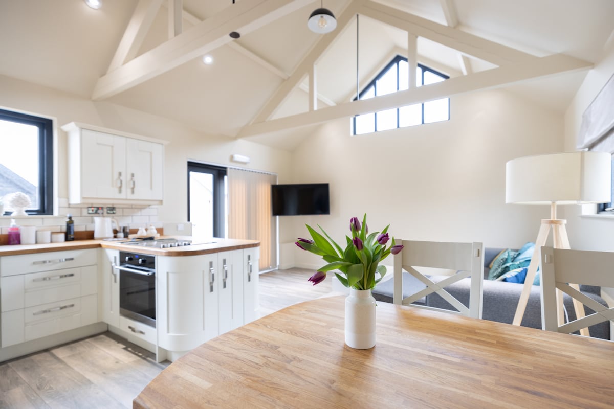 Mustard Pot Cottage is a charming 18th century barn conversion. The property comprises luxurious accommodation with a pretty enclosed south-facing garden which overlooks a pond. There is a light airy bedroom with a king size bed and a chest of drawers, a bathroom with a spacious walk in shower and a very well equipped kitchen with a dining and seating area. The cottage has a stylish Everhot mini stove as the main feature of the sitting room. A beautiful space with wooden floors throughout.