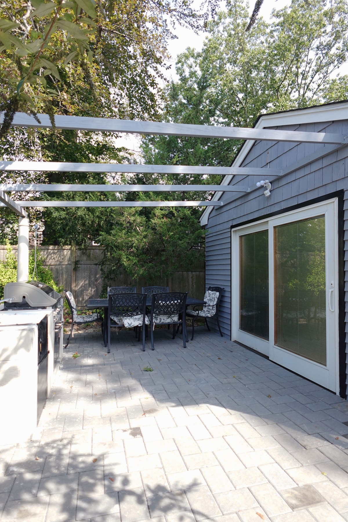 Fenced private backyard for your use only, own key for gate. MINS TO JONES BEACH, TOBAY BEACH, 15 mins to ferry to FIRE ISLAND, & SHELTER ISLAND, BLOCK ISLD 15 mins TO BETHPAGE GOLF COURSE - (Home of PGA) 10 mins to ADVENTURE LAND work desk pvt 1st floor 2 b/r, bathroom, kitchen, Bedr 1: King Size bed , full futon Bedr 2: queen size bed Living room: 75 inch TV, stereo, King Size sofa bed. Crib. Air mattress, TV in all bedrooms Webber grill, backyard lighting, outdoor movie