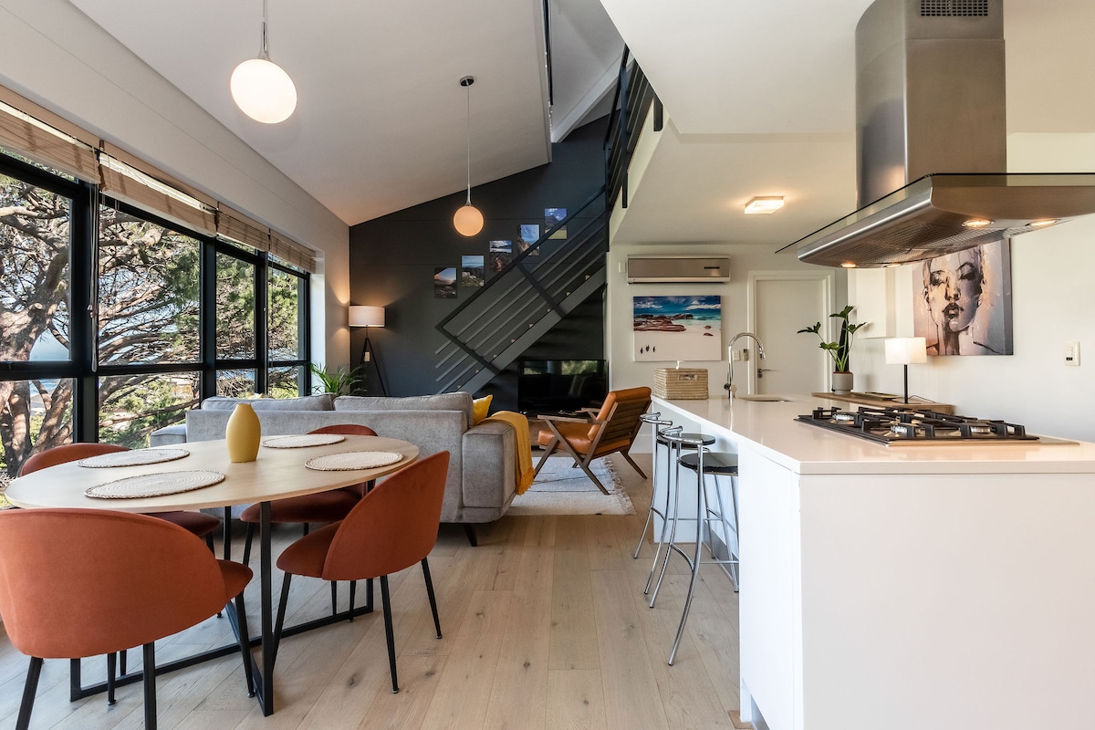 Our stunning home is a 5 min walk into the village and its award winning restaurants, shops and galleries. Black Elephant, Chamonix, Dieu Donne winery's and the famous Winetram are just a short walk away. Nooks is sumptuous, private, cosy, relaxing, full of original art, high ceilings, log fires, beautiful generous spaces and mountain views. Nooks comes alive at night and is great for couples, solo adventurers, who want to be near the soul of this beautiful village. We take up to 4 adults max.