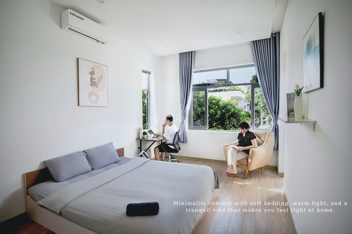 🌿 Welcome to our home built in 2025, inspired by clean and cozy Japanese-Korean design. There are 4 comfy bedrooms, each with a private bathroom and bathtub 🛁 – perfect for relaxing after a beach day! 📍 Just 7 mins to the beach 🏖️, and close to local food spots, cafes, and shops. 🏡 Fully equipped with a kitchen, washer, dryer, and fast Wi-Fi. Bright, peaceful, and ideal for families or groups looking for a home-away-from-home in Da Nang. 💬 We're always here to help—can’t wait to host you!