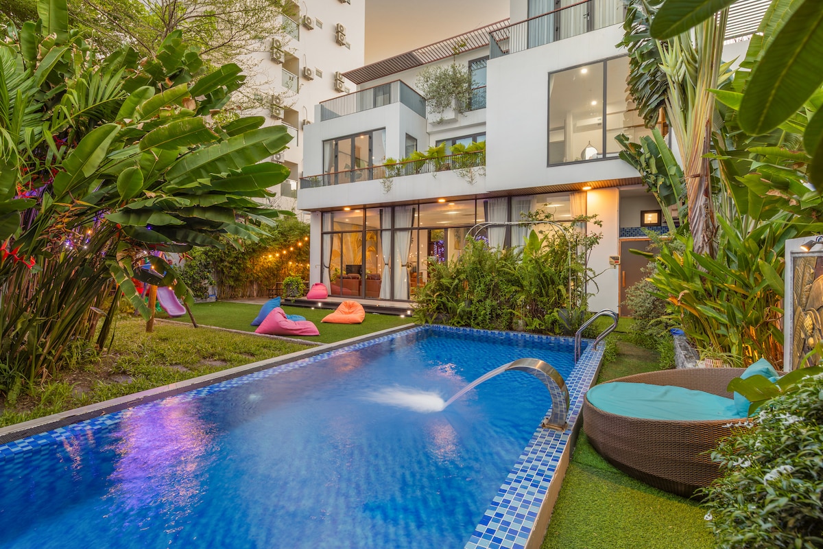 "Living room air conditioning - Private swimming pool - Daily towel replacement! Newly built: 4 BR/5 bathrooms. Comfortable king-sized beds, fully equipped kitchen, modern furniture and appliances, exquisite artistic style. 3 minutes walk to My Khe Beach *10 minutes by taxi from the airport. -7-minute drive to Dragon Bridge 30-minute drive to Hoi An *7-minute drive to the city center Welcome to Da Nang city with a warm embrace and lots of love! Tony & Luna"