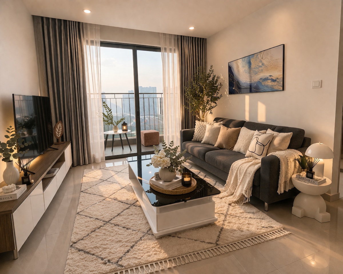 Căn phòng ngập tràn lãng mạn, tận hưởng netflix & chill Với thiết kế lấy tone trắng đen làm chủ đạo, decor thanh nhẹ với phong cách art châu Âu, cùng sắc đèn vàng ấm cúng, ban công hướng ra ngoài thành phố, máy chiếu có Netflix để chill buổi đêm, khu bếp nhỏ để tự nấu những món ăn thật ngon cho bản thân,...chắc chắn sẽ giúp bạn có những trải nghiệm chữa lành tâm hồn thật đặc biệt.