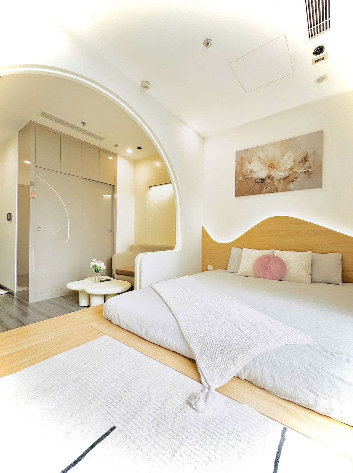 Căn phòng ngập tràn lãng mạn, tận hưởng netflix & chill Với thiết kế lấy tone trắng đen làm chủ đạo, decor thanh nhẹ với phong cách art châu Âu, cùng sắc đèn vàng ấm cúng, ban công hướng ra ngoài thành phố, máy chiếu có Netflix để chill buổi đêm, khu bếp nhỏ để tự nấu những món ăn thật ngon cho bản thân,...chắc chắn sẽ giúp bạn có những trải nghiệm chữa lành tâm hồn thật đặc biệt.