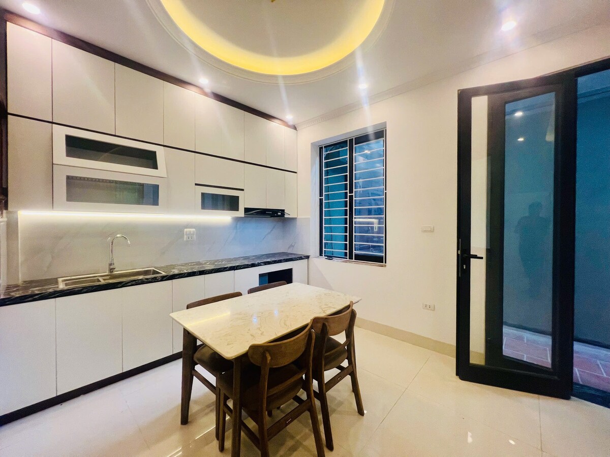 Chào mừng bạn đến với ngôi nhà thứ 2 của mình tại ngôi làng nhỏ yên bình cách Aeon Mall Long Biên 8 phút lái xe. -Ngôi nhà 6 tầng có thang máy. Tầng1:Phòng Khách,nhà vệ sinh. -Tầng 2:Phòng Ăn và nhà bếp . -Tầng 3:Phòng ngủ và nhà vệ sinh khép kín. -Tầng 4:Phòng ngủ và vệ sinh khép kín. -Tầng 5:Phòng ngủ và vệ sinh khép kín. Tầng 6: Bếp nướng BBQ,máy giặt,máy sấy và bàn ăn ngoài trời. Ngôi nhà decor đẹp,đầy đủ đồ dùng,bạn có thể tự mình nấu nướng