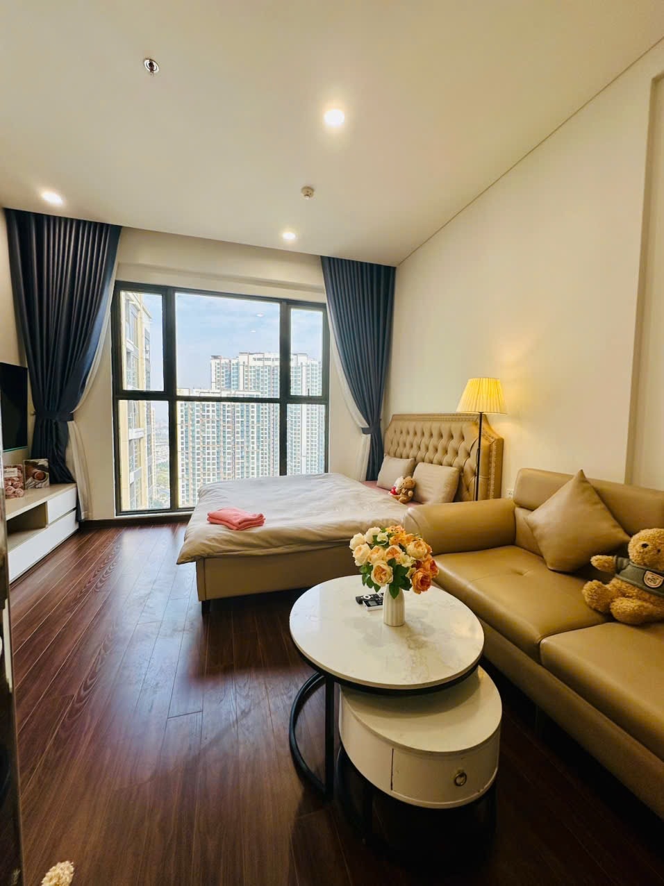 Studio hiện đại - View biển hồ Lagoon & biệt thự đắt giá tại Vinhomes Ocean Park Chào mừng bạn đến với căn hộ studio ấm cúng, hiện đại – nơi lý tưởng cho kỳ nghỉ thư giãn hoặc chuyến công tác ngắn ngày. View trực diện biển hồ, biệt thự và trục đường chính, đón gió và ánh sáng tự nhiên cả ngày. • Thiết kế full nội thất hiện đại: giường lớn, smart TV treo tường, bàn bar, bếp từ, tủ lạnh, máy lạnh, máy nước nóng… • Ban công thoáng mát, lý tưởng để nhâm nhi cà phê sáng hoặc chill buổi tối.