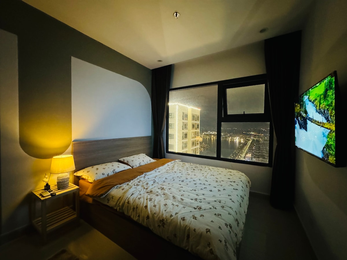 Chào mừng bạn đến với căn hộ Masteri studio cao cấp, nơi bạn có thể thư giãn với tầm nhìn hồ nước uốn lượn và toàn cảnh thành phố. Căn hộ được trang bị đầy đủ: điều hoà 2 chiều, máy giặt, nước nóng, tivi, tủ lạnh, bếp và đồ dùng nấu ăn. Tòa nhà có siêu thị, ngân hàng, quán ăn Hà Nội đặc trưng ngay bên dưới. Chỉ vài bước là tới trung tâm mua sắm, rạp chiếu phim, công viên và biển nhân tạo 24ha! Căn hộ luôn được giữ gìn sạch sẽ và chăm chút kỹ lưỡng – bạn chỉ việc xách vali đến và tận hưởng!