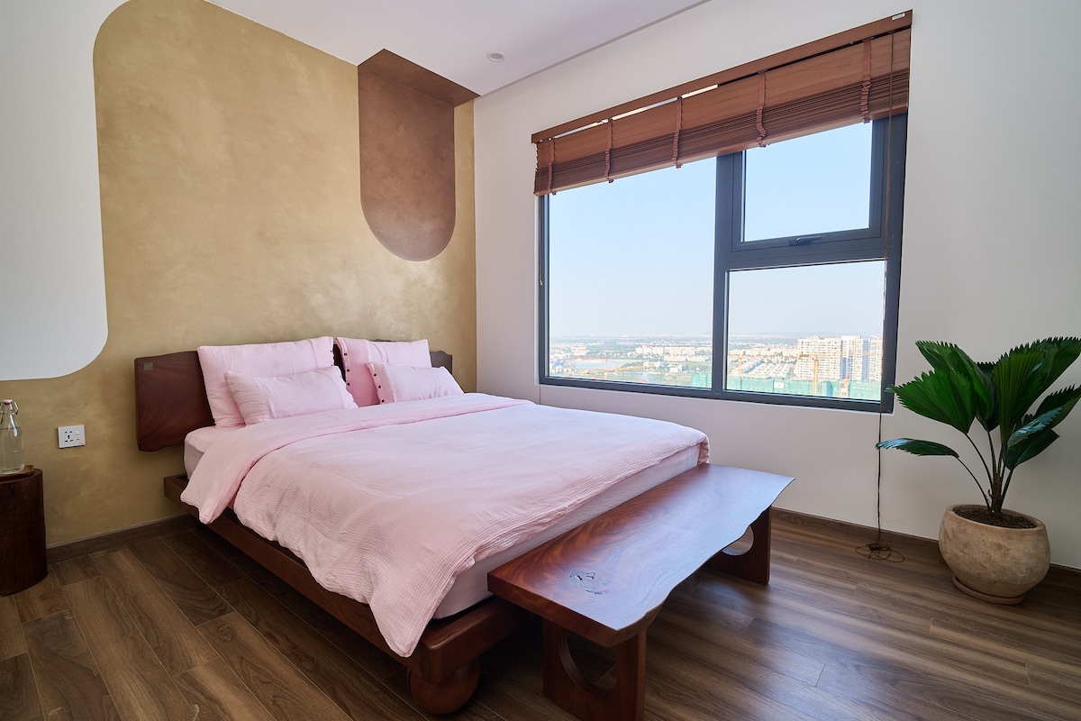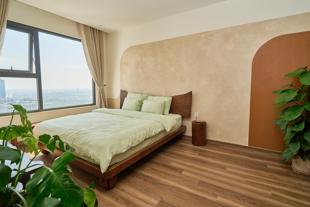 Phòng master phong cách Wabi Sabi, thiết kế tối giản, thư thái. Giường đôi êm ái, ánh sáng tự nhiên, decor tinh tế. Có nhà vệ sinh riêng trong phòng, đảm bảo sự riêng tư tuyệt đối. Khách được sử dụng phòng khách, bếp chung, wifi tốc độ cao và các tiện ích trong căn hộ. Phù hợp cho cặp đôi, khách công tác hoặc ai yêu thích không gian yên bình.