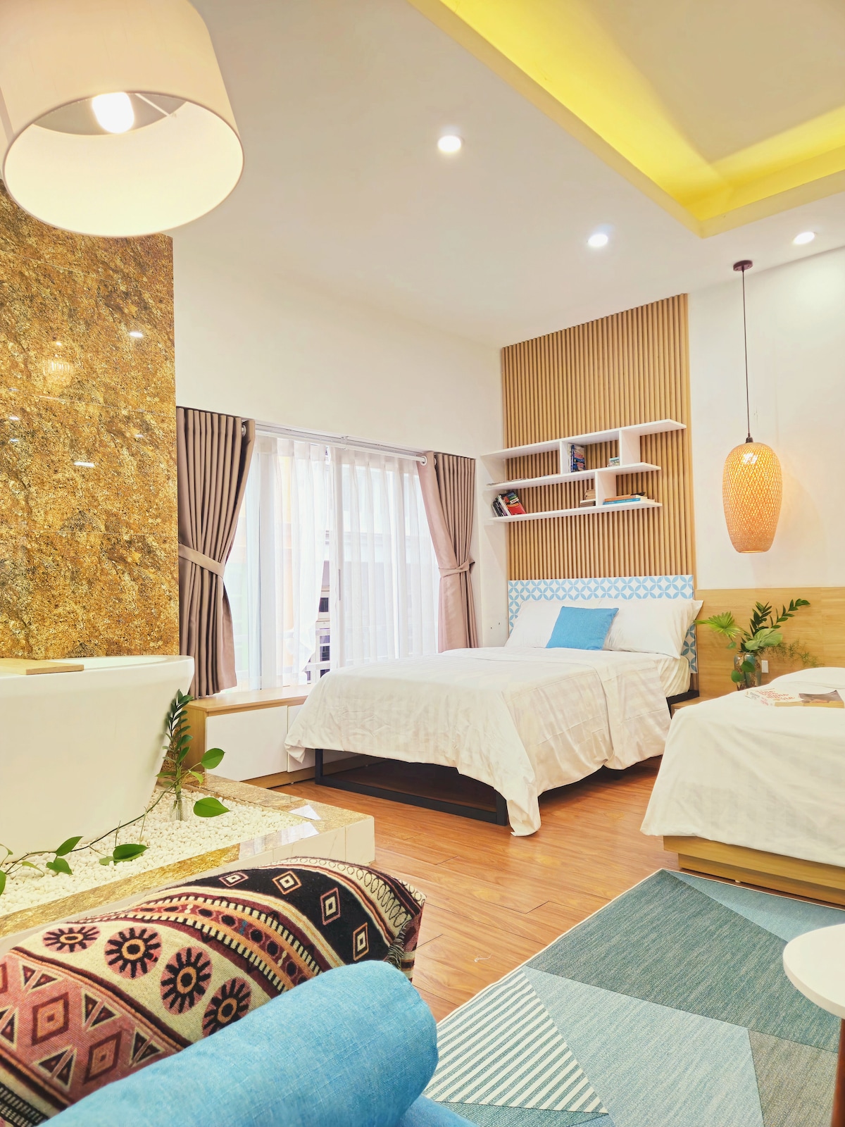 Discover Hanoi from this boutique condo in the Old Quarter—just a short walk to TRAIN STREET, HOAN KIEM LAKE, TEMPLE OF LITERATURE, and the THANG LONG IMPERIAL CITADEL. Thoughtfully designed for your comfort, it features a KING SIZE BED, PRIVATE KITCHEN, and a FULL HD PROJECTOR WITH 100 INCH SCREEN. Whether you're soaking in the WOODEN BATHTUB or taking in the city views, every detail invites relaxation. A perfect blend of central location and serene retreat.
