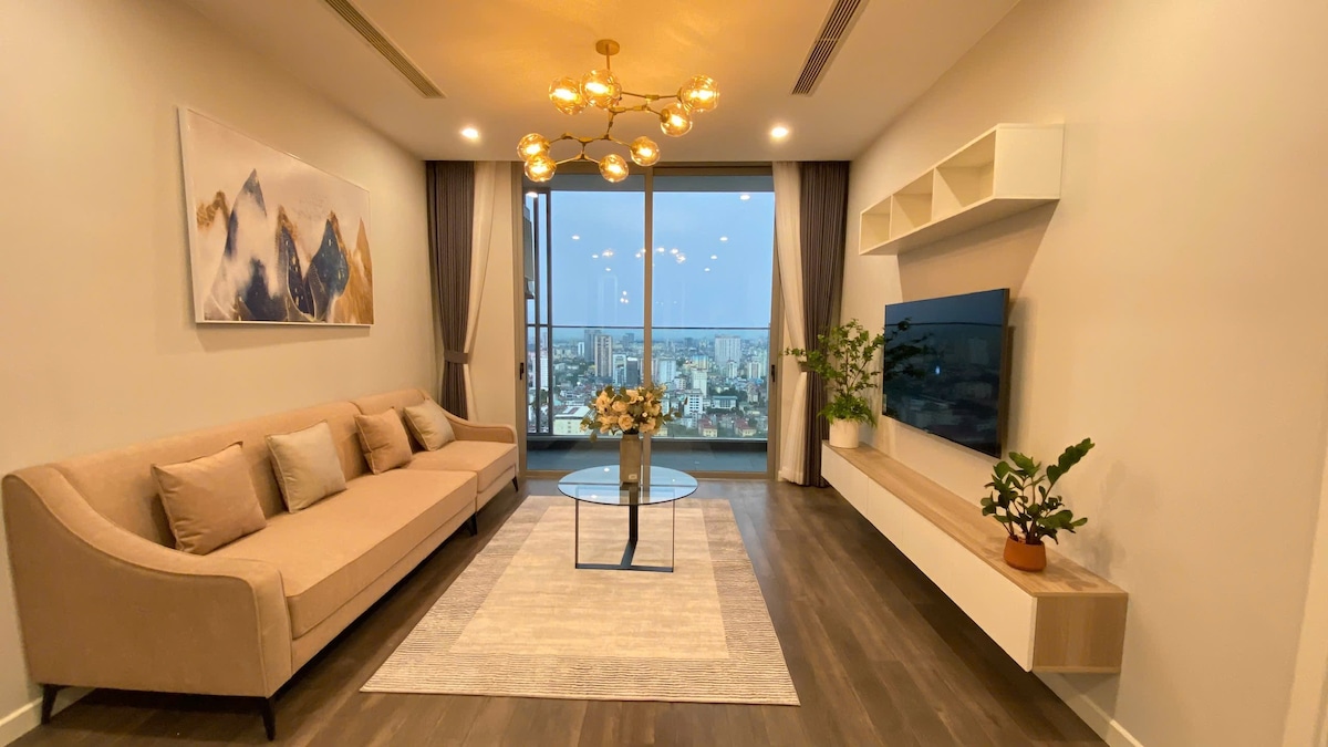- Located in N01-T7 Han Jardin building - Apartment description: 1 living room , 1 kitchen, 2 bathroom,3 bed room (1king and 2 queen size beds). - There is a private shower stand and a shower room with shower and free toiletries. While the kitchen is equipped with a microwave, refrigerator and cooking stove. - Available WiFi, Internet, Cable TV. This apartment is very spacious (~ 106m2) , cleaning service 3 days/time (or according to customer's demand).This unique place has a style all its own.