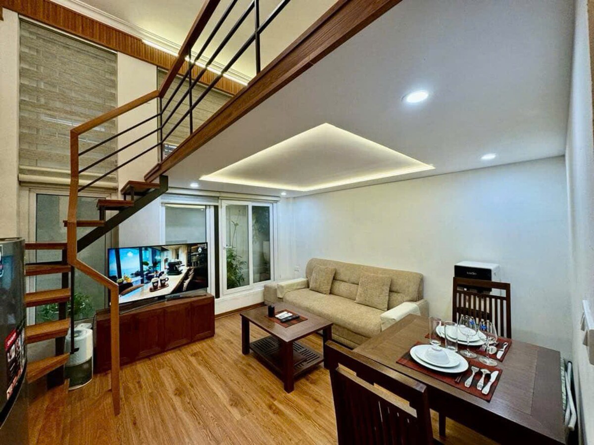 Căn phòng nằm trong tòa nhà 7 tầng có thang máy, sẽ cung cấp cho bạn nơi nghỉ ngơi thoải mái khi đi công tác hay du lịch. Chỗ ở cách Lotte Mall : hơn 1km Cách cầu Nhật Tân: 2km Cách Hồ Tây: 4km Cách Phố cổ: 6km Căn hộ có máy chiếu thư giãn, ban công ngập ánh sáng và chiếc giường thoải mái, bếp đầy đủ dụng cụ bạn có thể tự nấu những bữa ăn theo sở thích riêng. Xung quanh cũng rất thuận tiện với nhiều siêu thi, hàng quán và quán cà phê.