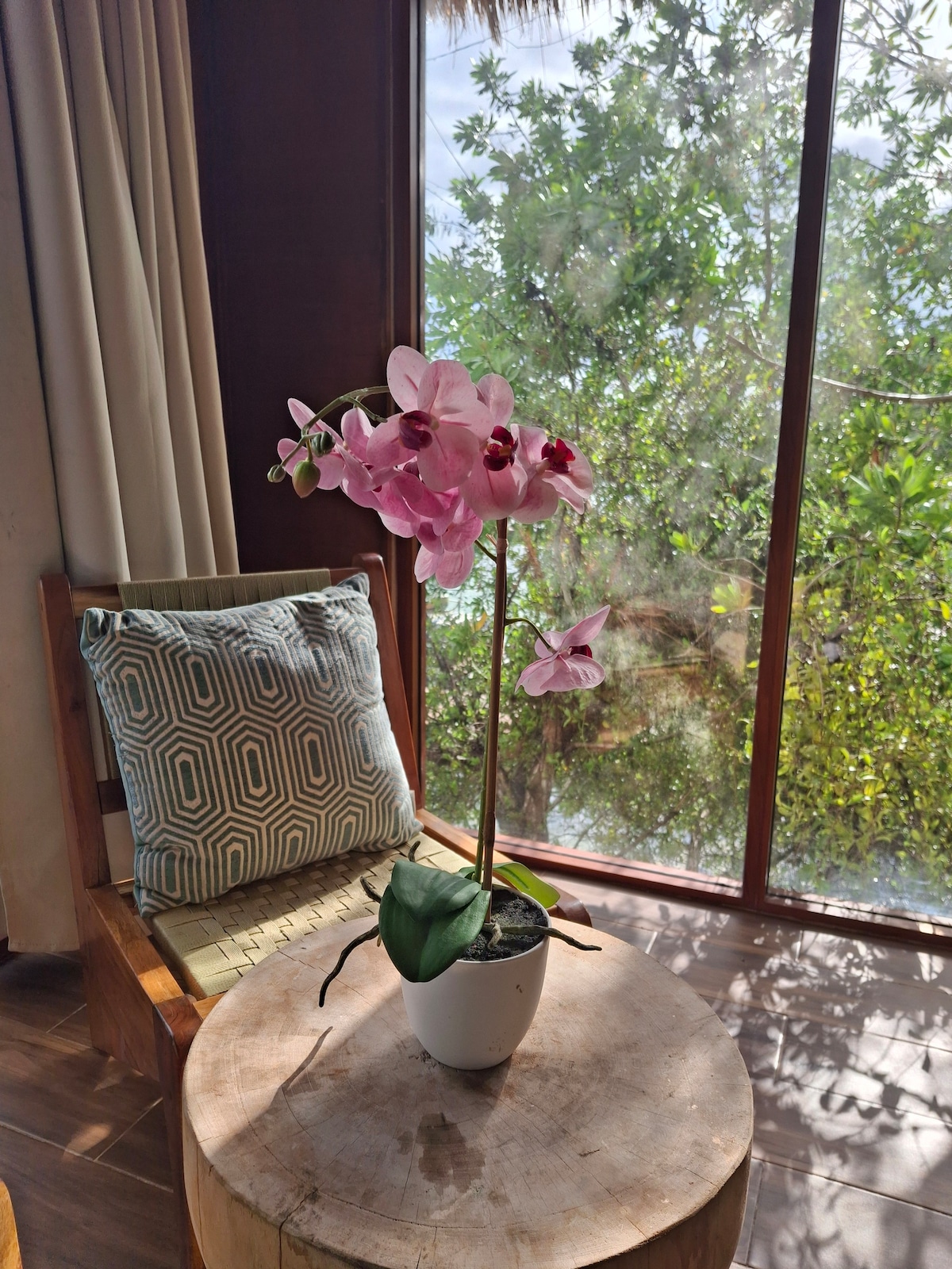 Hotel Selva y Arte Bacalar Acogedores búngalos, en el corazón de Bacalar, a solo 2 cuadras de la impresionante Laguna de los Siete Colores. Estancia cómoda con cocineta, frigobar, wifi, aire acondicionado y baño privado. Cortesía café, té, pan y gruta de mano. Gratis renta de bicicletas. Bacalar con comodidad, aventura y un ambiente único.