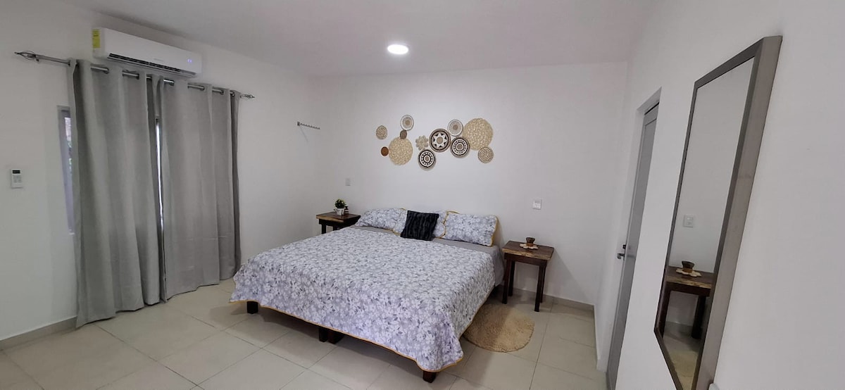 Si buscas conectar con la naturaleza y disfrutar la laguna de Bacalar alejado del bullicio, este es tu lugar. Uso de bicicletas y daypass dario a club de playa en la laguna de Bacalar sin costo. La propiedad esta a 5 minutos en bicicleta de la Laguna de Bacalar Lujosa y cómoda Villa de 2 pisos para 6 personas. 2 habitaciones y 2 baños completos. Terraza privada con jacuzzy. Starlink WiFi, A/C, Netflix, camas de memmory foam. Jardines comunes con area de asador, hamacas, etc.