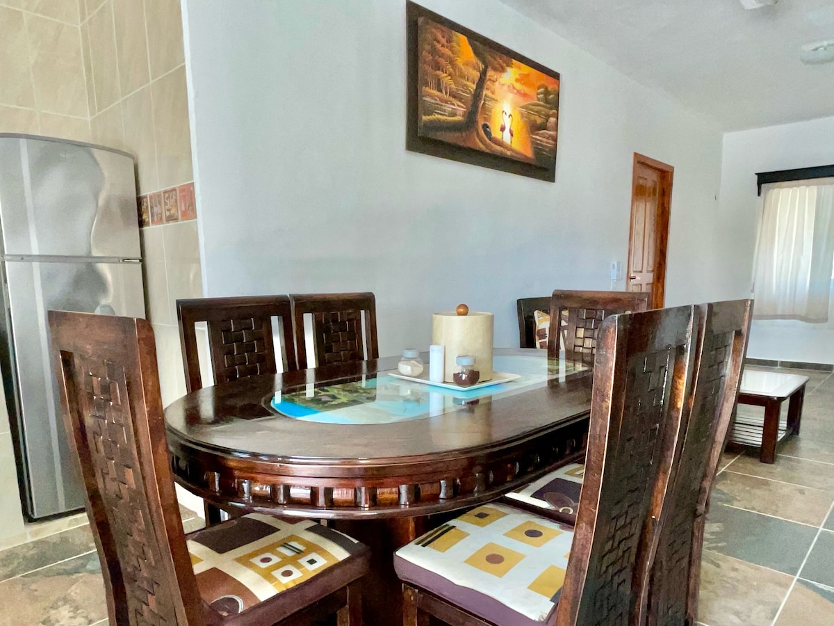 The second floor studio apartment at Hotel & Suites Oasis Bacalar is super practical, while also cozy and charming Your studio apartment has: - A Queen bed situated in a semi-separate area of the apartment - A fully equipped kitchen - Full size fridge, microwave, blender, toaster, plenty of pots/pans and various kitchen equipment - A hardwood dining table - A sitting area with a sofa and table. - A balcony with chairs and table, with view to the pool - Fast wifi - Tv with Roku. - Prime location!
