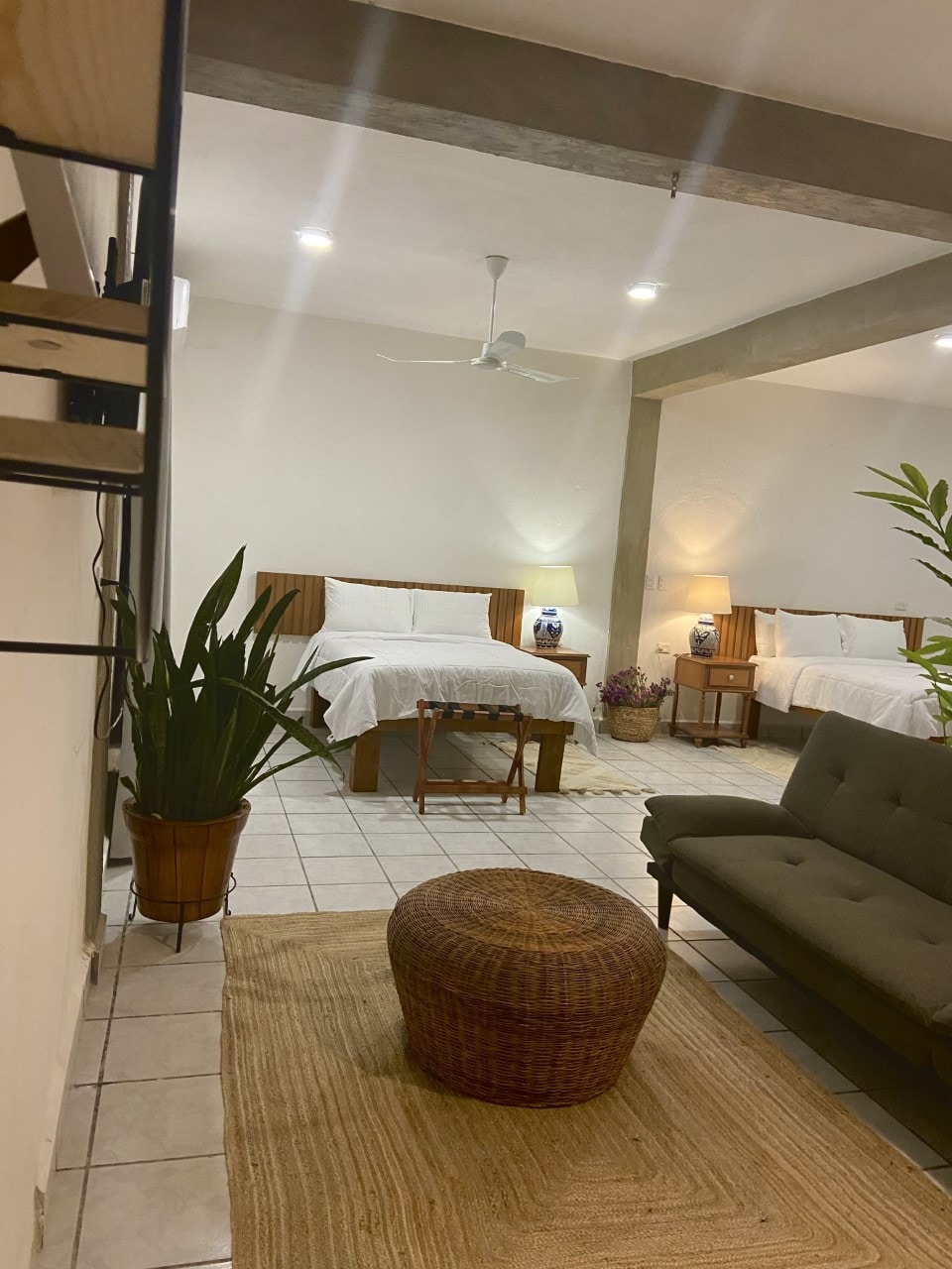 Relájate en un departamento tipo estudio lleno de tranquilidad, comodidad y privacidad; se encuentra a solo 5 minutos del ADO y a 10 min del aeropuerto, un Oxxo y dos restaurantes a solo 2 minutos de distancia, frutería en la esquina y lavandería a la vuelta.