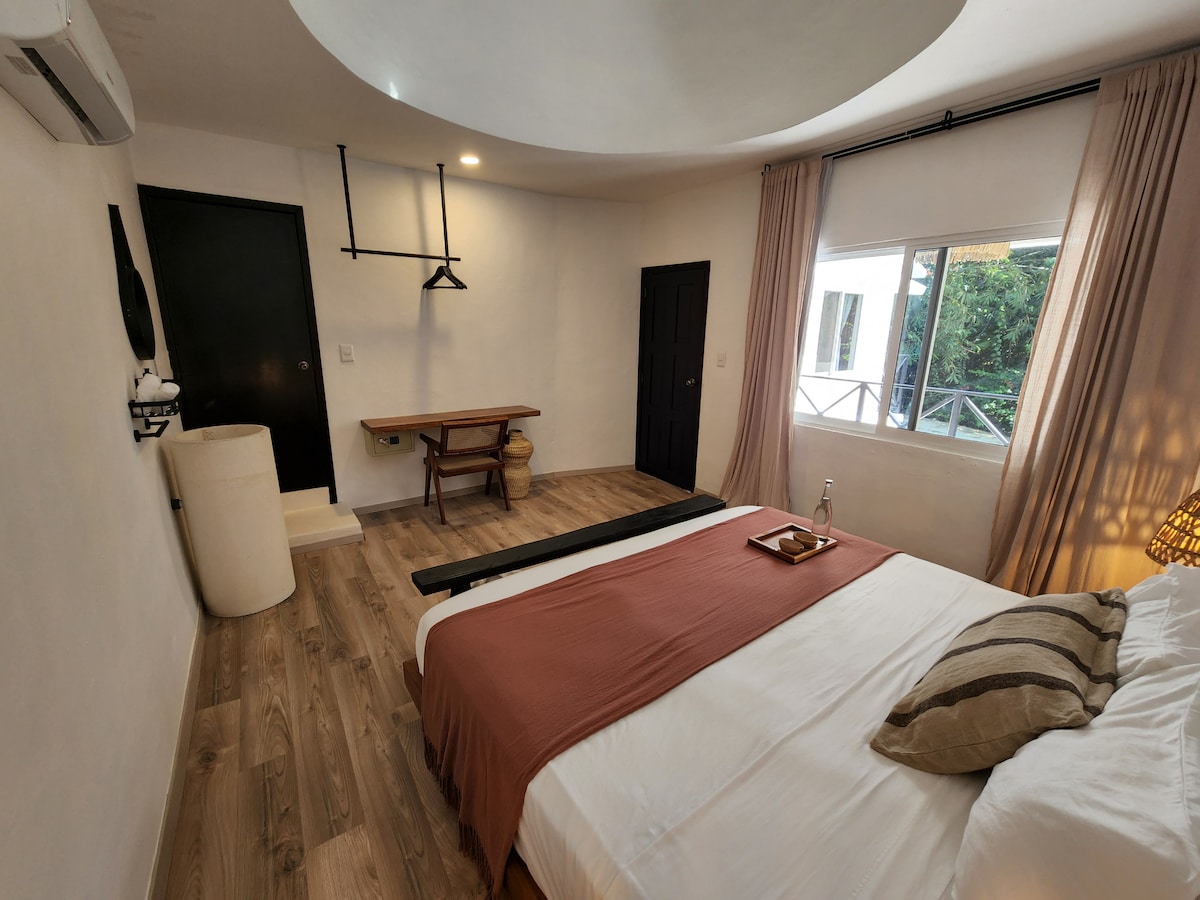 Hermoso cuarto confortable con todos los servicios necesarios para una calida estancia. Cuenta con una cama King Size, 1 cama individual, A/A, Ventiladores de Techo, Smart TV con Netflix, HBO, Prime Video), Frigobar, Cafetera con café de grano, WIFI), Baño propio. Laguna a solo 3 cuadras, mercado a 1 cuadra, centro a 3 cuadras. Contamos con 3 bicicletas incluidas en el precio de la habitación y cocina completa compartida.