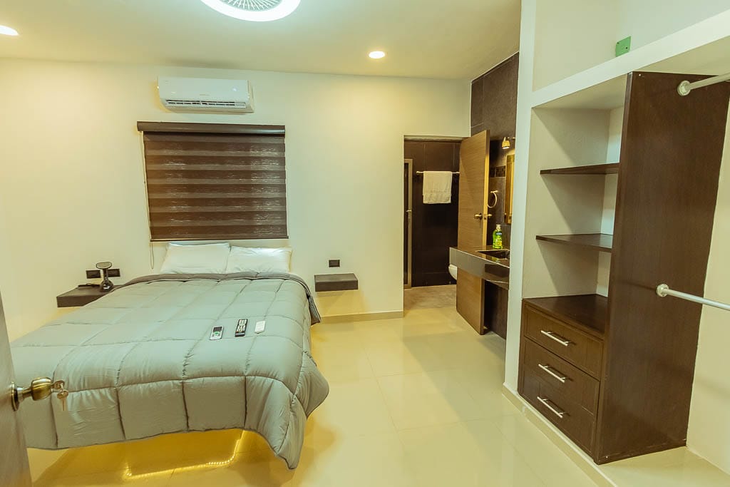 Cálido y cómodo alojamiento en medio de una zona tranquila y con puntos de interés cercanos. A solo 5 min. caminando de la bella Bahía de Chetumal, a unas cuantas cuadras de supermercados, gimnasios, farmacias, oficinas de gobierno, tiendas 24 hrs. y la Av. Insurgentes, la más importante de la ciudad que conecta con la salida a Bacalar y Calderitas. Equipada con elementos confortables y WiFi de alta velocidad y todo lo necesario para una estancia espectacular en la capital.