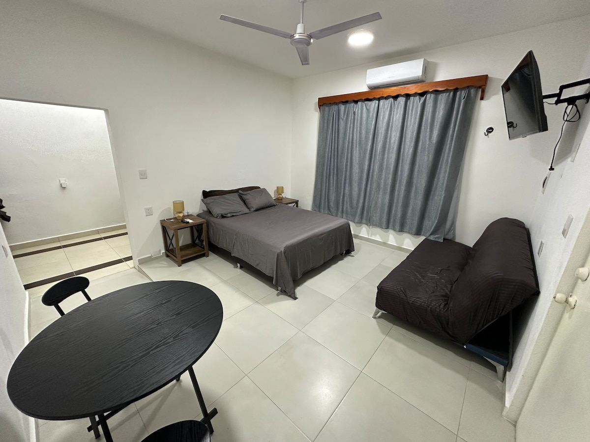 Departamento básico con cocina para viajeros “low cost”, cerca de la carretera principal a nueve calles de la Laguna. ⚠️ IMPORTANTE ⚠️ Debido a los trabajos del Tren Maya en las últimas fechas se han reportado fallas en el sistema de electricidad de la zona. Algunos huéspedes pasan su estadía sin ningún problema y otros experimentan variaciones de luz o apagones. No se admiten mascotas. No contamos con resguardo de equipaje.