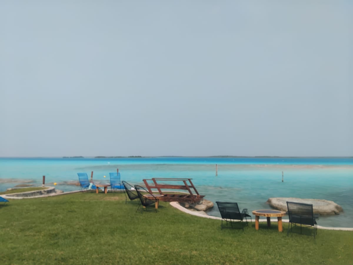Bienvenido a nuestro paraiso en Bacalar, ubicado a la orilla de la laguna. nuestras suites y bungalows a pie de laguna ofrecen impresionantes vistas de la laguna,una motocicleta incluida en tu estadia , emprende una aventura para descubrir en pueblo magico de Bacalar y relajarte en nuestro jardín. Comienza tus días con nuestro desayuno incluido antes de sumergirte en una aventura acuática con nuestros kayaks y paddle incluidos. Bienvenido al paraíso donde disfrutara cada momento