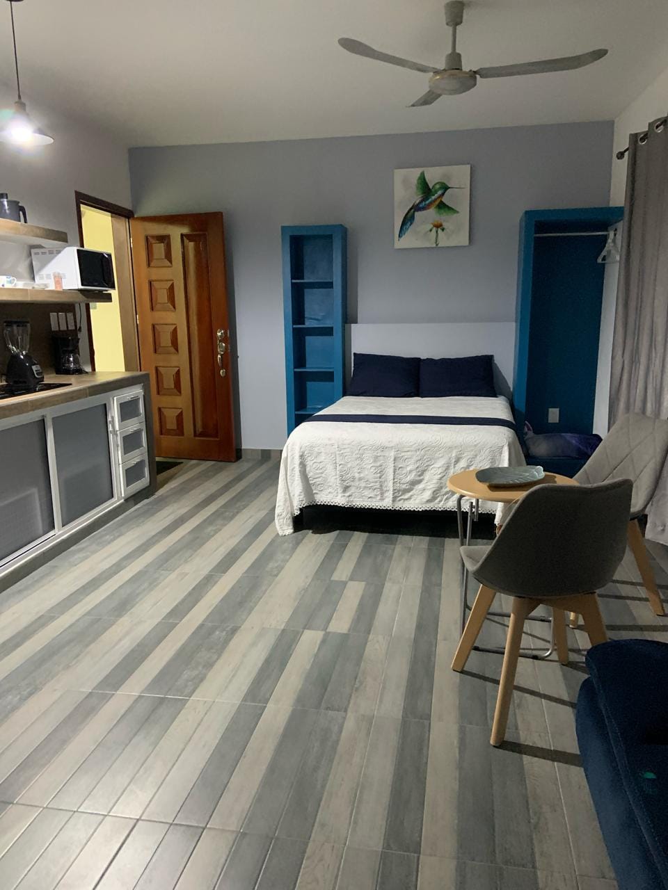 Ya’axka is the Mayan word for turquoise which is one of the many shades of blue you’ll enjoy when swimming in the Bacalar Lagoon. This one bedroom apartment is centrally located only a 7 minute walk to the lagoon and 10 min walk to restaurants and the central park. Enjoy a comfortable bed, full kitchen, living room, balcony, and a bathroom while you plan your next Bacalar exploration trip. A/C units and ceiling fans will keep you cool while resting. NEW WIFI PROVIDER SINCE JAN 2023, STARLINK!