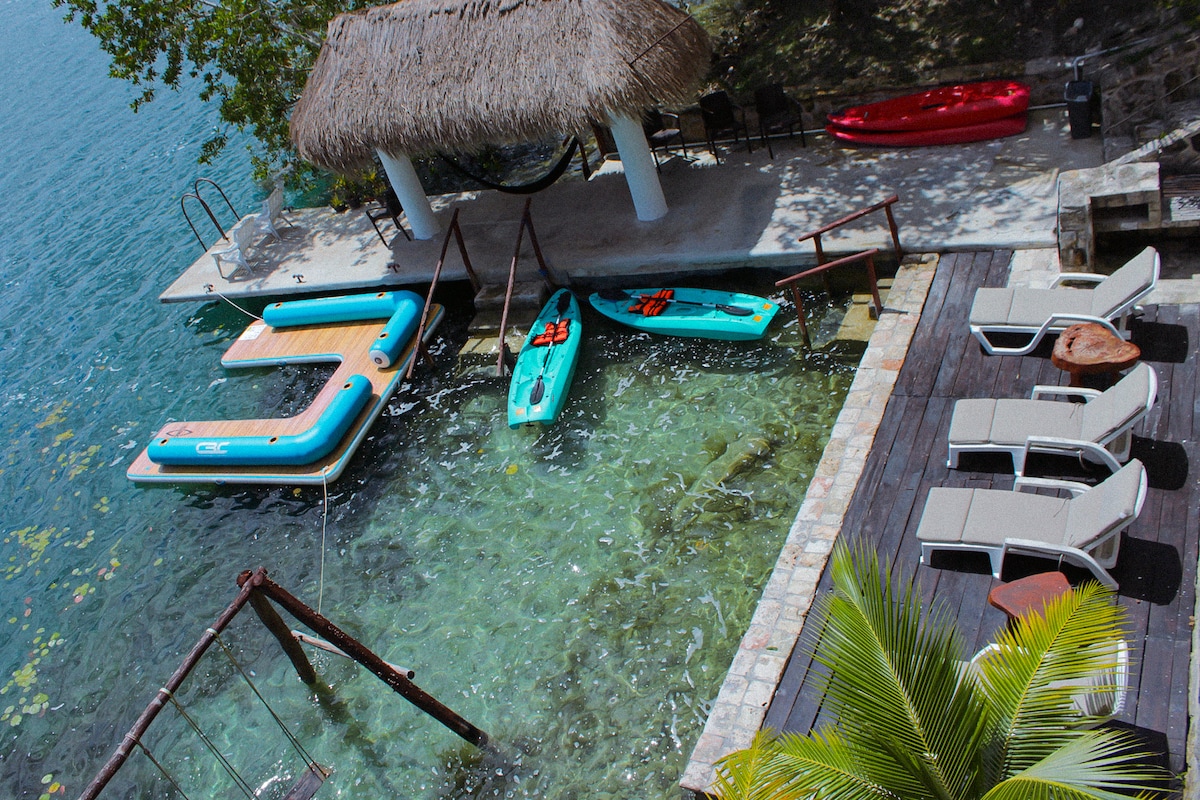 Tucan Village te ofrece un alojamiento cómodo y seguro, en la costera de Bacalar, con una vista privilegiada, asoleadero y muelle de acceso a la laguna de los 7 colores y el cenote Cocalitos a través de cabañas estilo casas mayas equipadas con aire acondicionado, ventilador, baño propio, frigobar, televisión con cable, WIFI en áreas comunes y espacios al aire libre para admirar la belleza de la Laguna de Bacalar. ¡Le ofrecemos kayaks incluidos en su reserva!