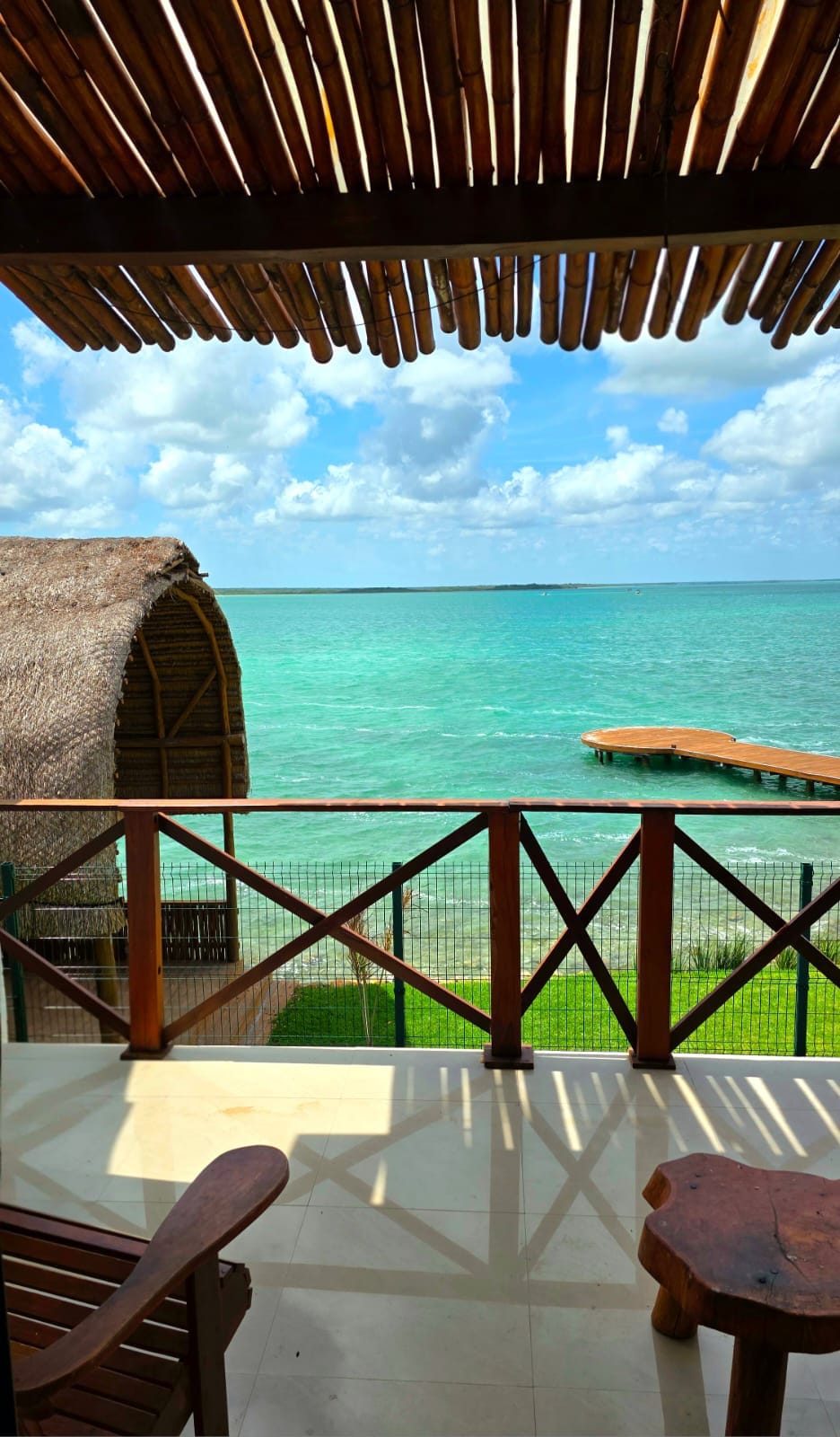 Yaya Suite te ofrece una experiencia inolvidable frente al mar en Mahahual. Recientemente renovada, ahora con techo de cemento y aire acondicionado moderno. Disfruta del sonido de las olas desde tu cama, diseño de lujo, agua caliente, Smart TV y wifi rápido. Incluye 10% de descuento en Yaya Beach Club con camastros, comida y cocteles frente al Caribe.