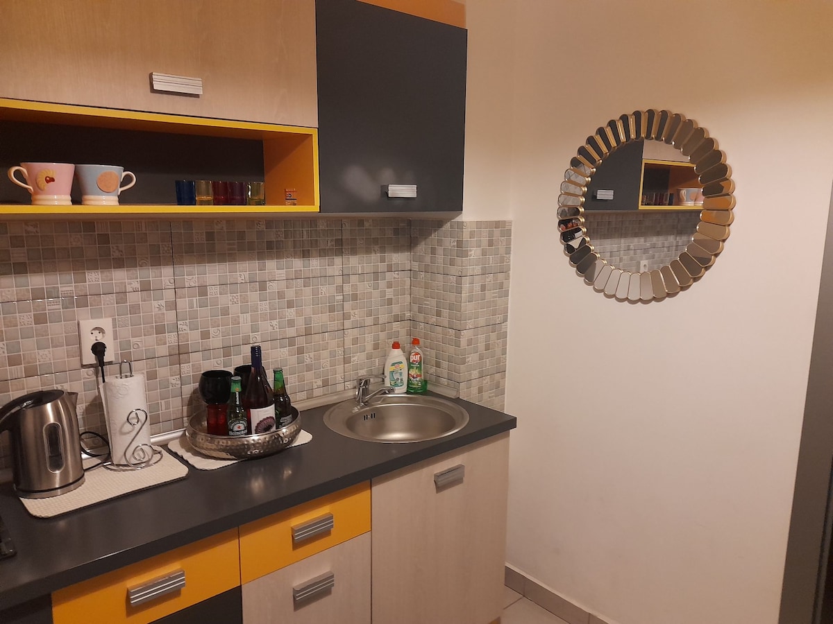 Acest studio nou, luminos și elegant este situat în una din zonele cele mai căutate din Bacău. Cu acest mic apartament vă oferim o opțiune ideală de cazare. În apropiere se află mall-ul, supermarket, restaurante și cafenele, transport public. Studio-ul are 2 camere și este potrivit pentru maxim 3 persoane. Este dotat cu: Wi-Fi, aer condiționat, espressor (cafea din partea casei), mașină de spălat, bucătărie și baie bine echipate, self check-in. Parcarea este asigurată.