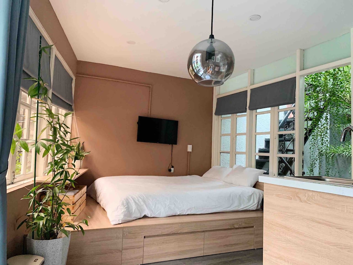 Uncover a Treasure on a Major Street in Hoan Kiem District. Located near the old town, the room is bathed in natural light from a large window, creating a cozy atmosphere. The sounds of vendors and aromas from the bustling streets add to its lively charm. -7m walk to the Old Quarter, -10m to Hanoi Railway Station -20 minutes to the Night Market. -Elevator -Free Washing Machine n Dryer -Famous Restaurant and Cafés Nearby -Fully Equipped Kitchen -Netflix - Sim card for sale
