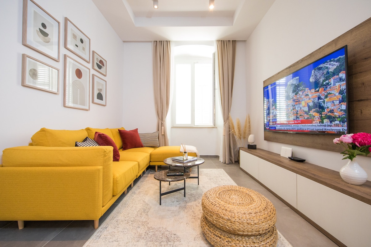 This modern, spacious, bright and cosy apartment lies on the ground floor of the traditional stone house in the most desirable part of the town known as Ploce. A garden of orange trees and a private terrace with dining, lounge and sunbed area, provide breathtaking views overlooking the Adriatic sea and Old town of Dubrovnik. Just a few minutes walk from the Old Town, the apartment is far away from busy streets and noise just enough to be the oasis of peace and tranquillity.
