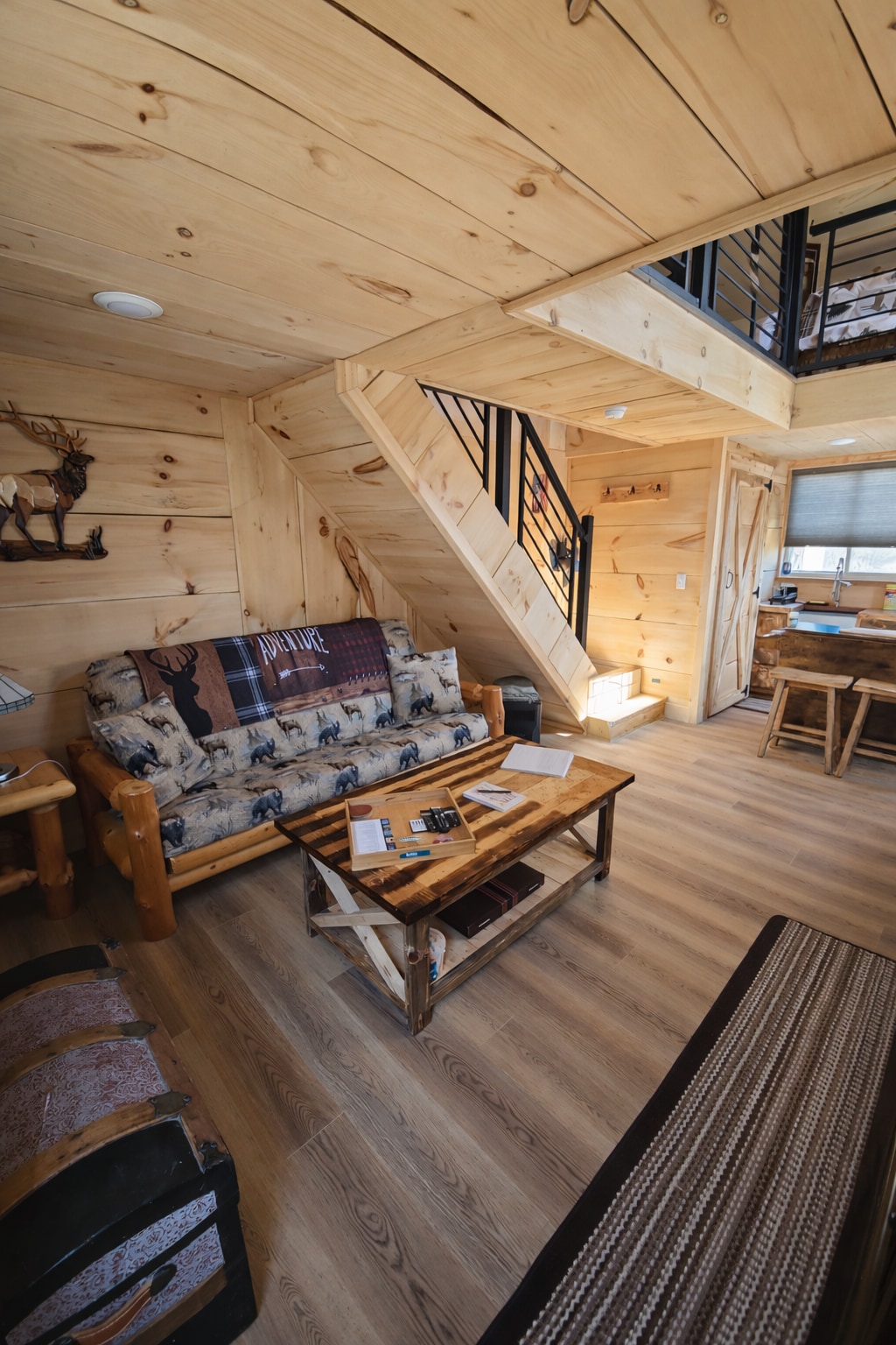The log cabin was built as a place to unwind, relax, and truly unplug. Nestled among 15 acres of rolling hills, the cabin can serve as a place to hunker down and read three novels, or a home base for hiking, cycling and putting the nature back in your life. Be advised, there is NO television and that’s for good reason. Cook, drink, eat, play, relax and refresh yourself. Wake up to the songs of birds and listen to the owls at night while you’re warming yourself around a bonfire.