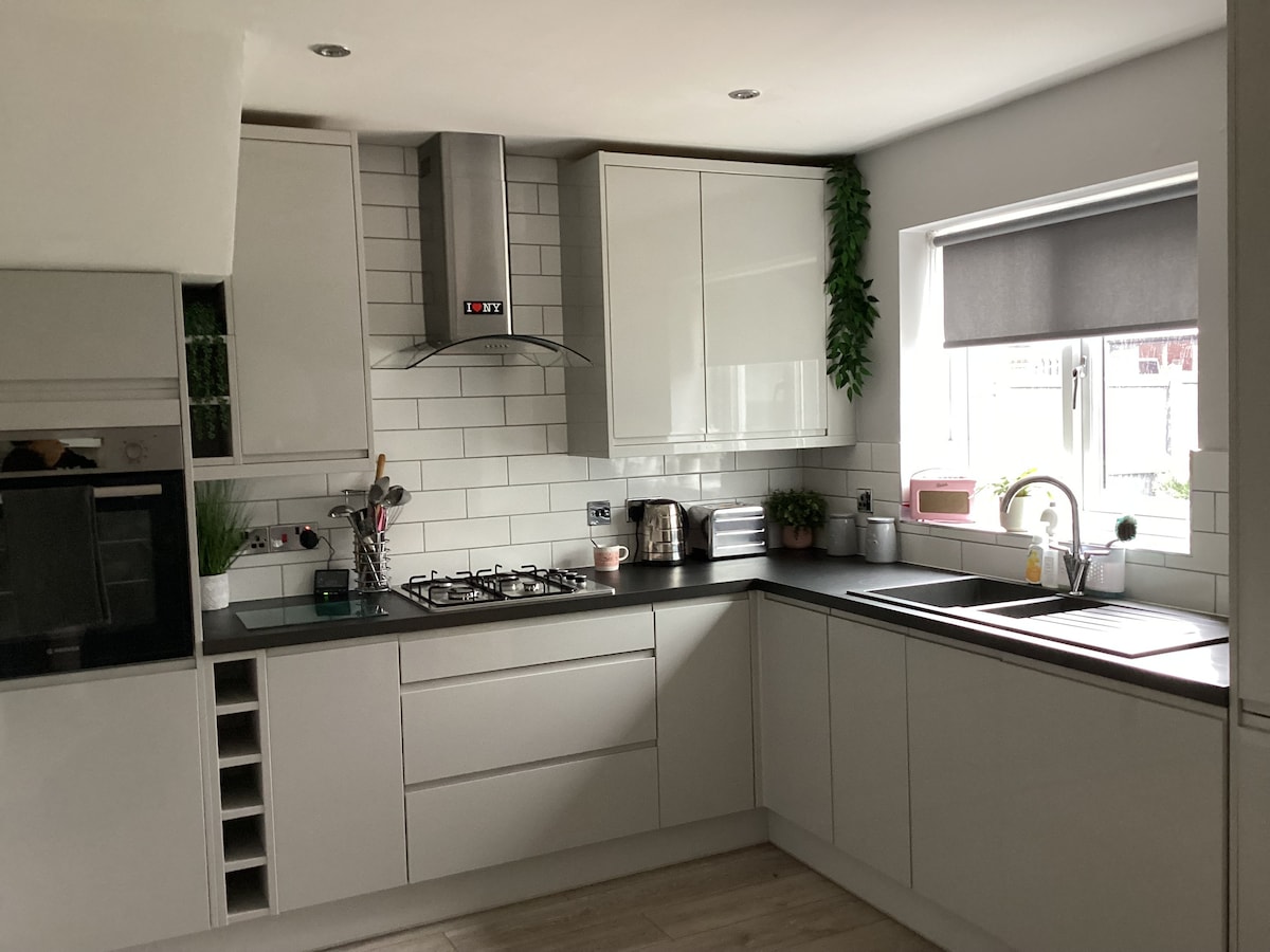 Have fun with the whole family at this stylish place. Property in a quiet area, the property is thoughtfully decorated with a private garden and a patio area. Downstairs comprises a cosy lounge with TV, fully fitted kitchen, separate dining room. Upstairs a bathroom, master bedroom with a luxurious king size bed, second bedroom a size bed and cosy third bedroom. Fibre Wi-Fi. Whether visiting friends, family holiday or working, this home will make you feel welcome. Off road parking.