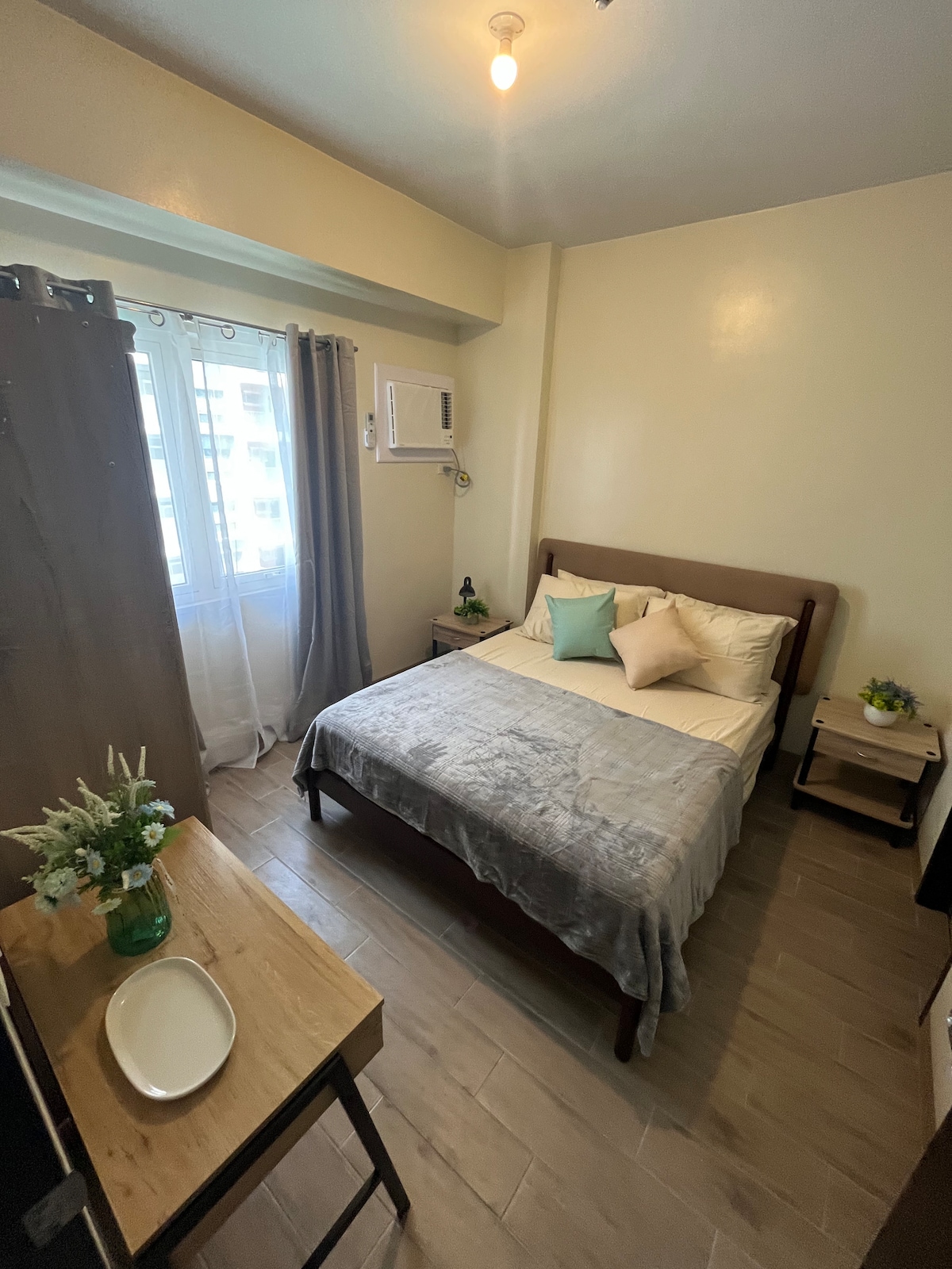 Welcome to your cozy studio in the heart of Bacolod! Thoughtfully prepared with all the essentials—comfortable bed, fresh linens, private bath, mini fridge, kettle, Wi-Fi, and AC. While we’re truly sorry there’s no kitchen or cooking available at this time, we invite you to explore the city's beloved cafés and restaurants nearby. We’re here to make your stay smooth, relaxing, and full of the local charm Bacolod is known for.