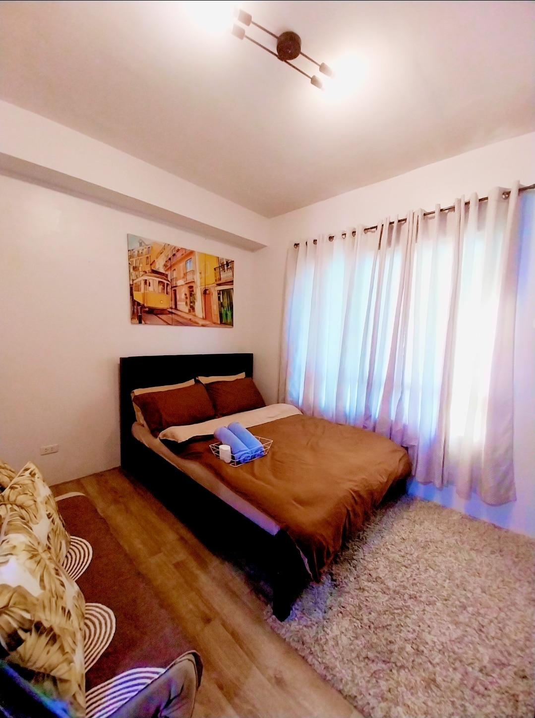 A cozy one bed room unit at the heart of the City. Easy accessible to transport that will connect you to nearby places. The place will comfort you with a king size bed, dimmed curtain, extra sofa bed and a wide sala set in the living room. It is equipped with kitchen essentials if the guest plans to cook. No time to waste inside the unit for we offer you free internet access, TV entertainment channels that includes Netflix. Guest can have access to the swimming pool of the Condo as well.