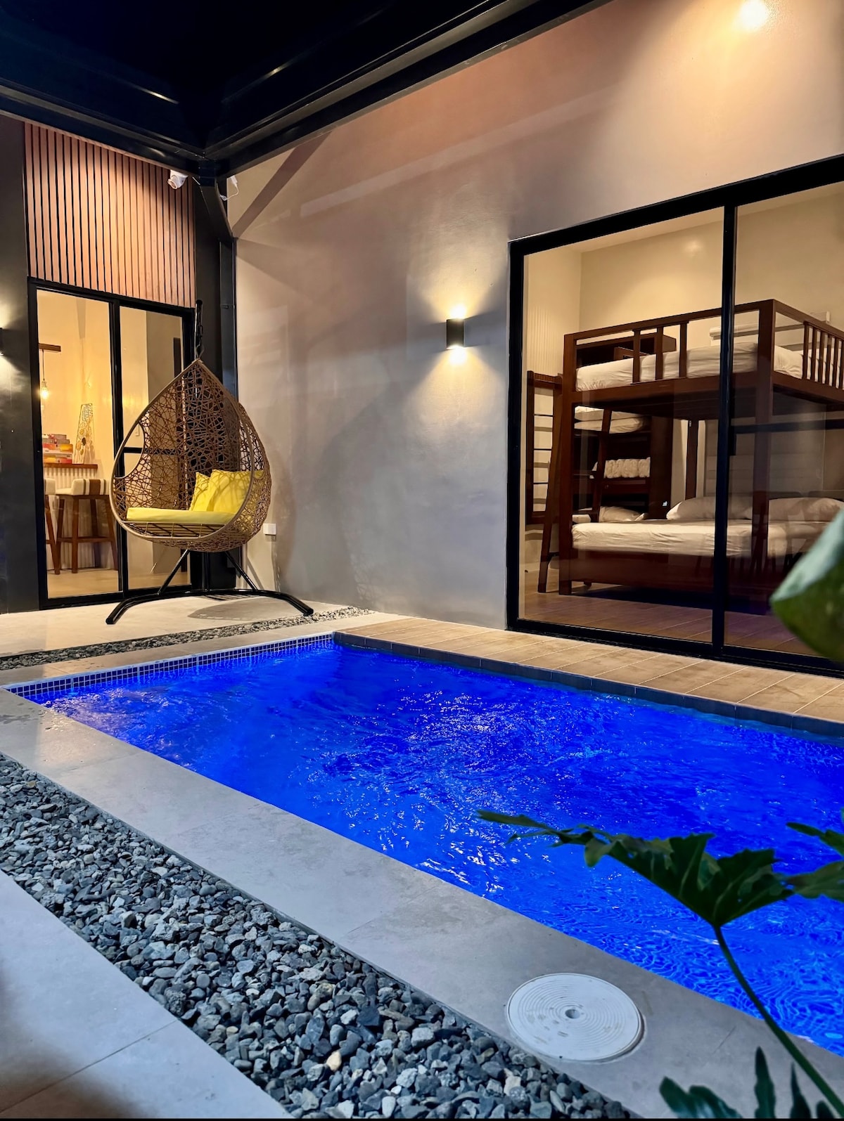 Enjoy full privacy in this gated garden villa with your own 5feet deep, 15 sqm infinity pool seated in a 200 sqm garden. Located in Brgy. Del Rosario with easy access via MacArthur Highway. Ideal for couples, small families, or friends looking for a quiet and private stay. Average Travel Time: • 14 mins – San Fernando Center • 30 mins – SM Pampanga • 38 mins – Angeles City • 45 mins – Clark International Airport..